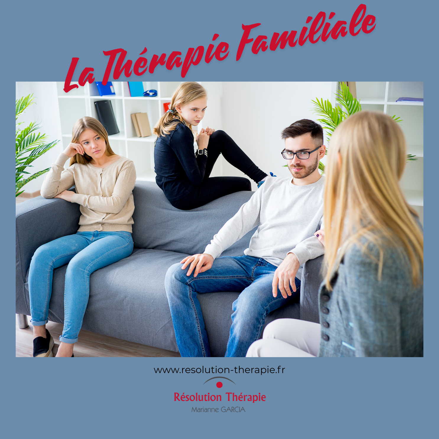 La Thérapie Familiale tient compte de tout ce qui se passe au sein de la famille. Elle pointe du doigt les non-dits, les fausses croyances et les rancœurs. C’est généralement un mal être, d’une ou plusieurs personnes et impactant la famille qui sera à l’origine de la Thérapie. Elle se base sur les relations et les interactions présentes dans la famille et elle s’adresse à toutes sortes de familles, qu'elles soient traditionnelles, monoparentales ou recomposées. Le but de la Thérapie Familiale est de trouver ou de retrouver un équilibre au sein de la famille, tout en osant exprimer ses émotions et ses propres expériences. L’objectif est souvent de renouer avec la communication, d’éliminer toutes incompréhensions et de retrouver une harmonie familiale. Les motifs propices aux conflits familiaux sont : • Crise d’adolescence : un enfant peut rencontrer des difficultés, et même si elles sont propres à celui-ci, elles peuvent avoir des répercussions sur l’équilibre de la famille. • Disputes à répétitions : la Thérapie Familiale vous apprendra à gérer ensemble les différents conflits et à trouver ensemble des accords constructifs et des solutions. • Manque de communication : les séances vous permettront de trouver les outils utiles à une bonne communication. • Un bouleversement comme un décès - une naissance - le départ des enfants – la maladie : ces épreuves souvent difficiles peuvent être un obstacle à la communication et au besoin d’exprimer ses sensations, ses besoins, par peur de rajouter de la douleur à une souffrance déjà existante. • Des décisions importantes : apprendre à s’écouter, à ne pas juger, à s’exprimer facilitera les échanges pour les prises de décisions familiales. • Des non-dits : exprimer ses peurs, ses appréhensions, ses interrogations, ses doutes, dans un espace neutre et dépourvu de tout jugement permettra de libérer la parole. Les écrans, les réseaux sociaux créent de la distance et une indifférence apparaît. Les échanges ne sont plus spontanés et la communication est inexistante ou compliquée. La libération de la parole permettra aussi de libérer les émotions . Chacun pourra s’exprimer librement sans peur du jugement ce qui permettra d’affronter des situations de crise. Le but de la Thérapie Familiale est de débloquer des situations difficiles, d’être solidaires, pour affronter les difficultés et ainsi créer une famille harmonieuse. Si vous aussi vous rencontrez des difficultés au sein de votre famille, contactez-moi et nous échangerons sur vos besoins.